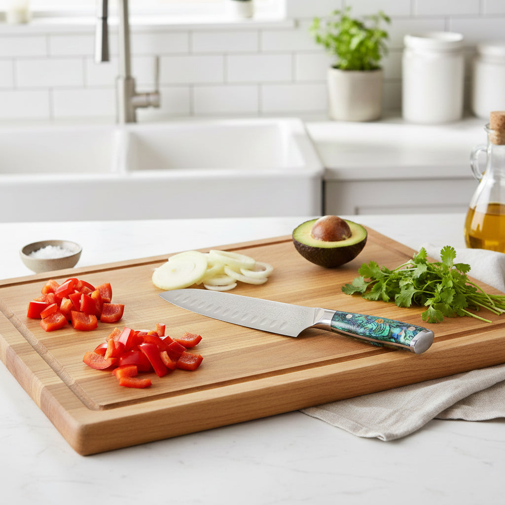 • Couteau Santoku tranchant comme un rasoir de 18 centimètres