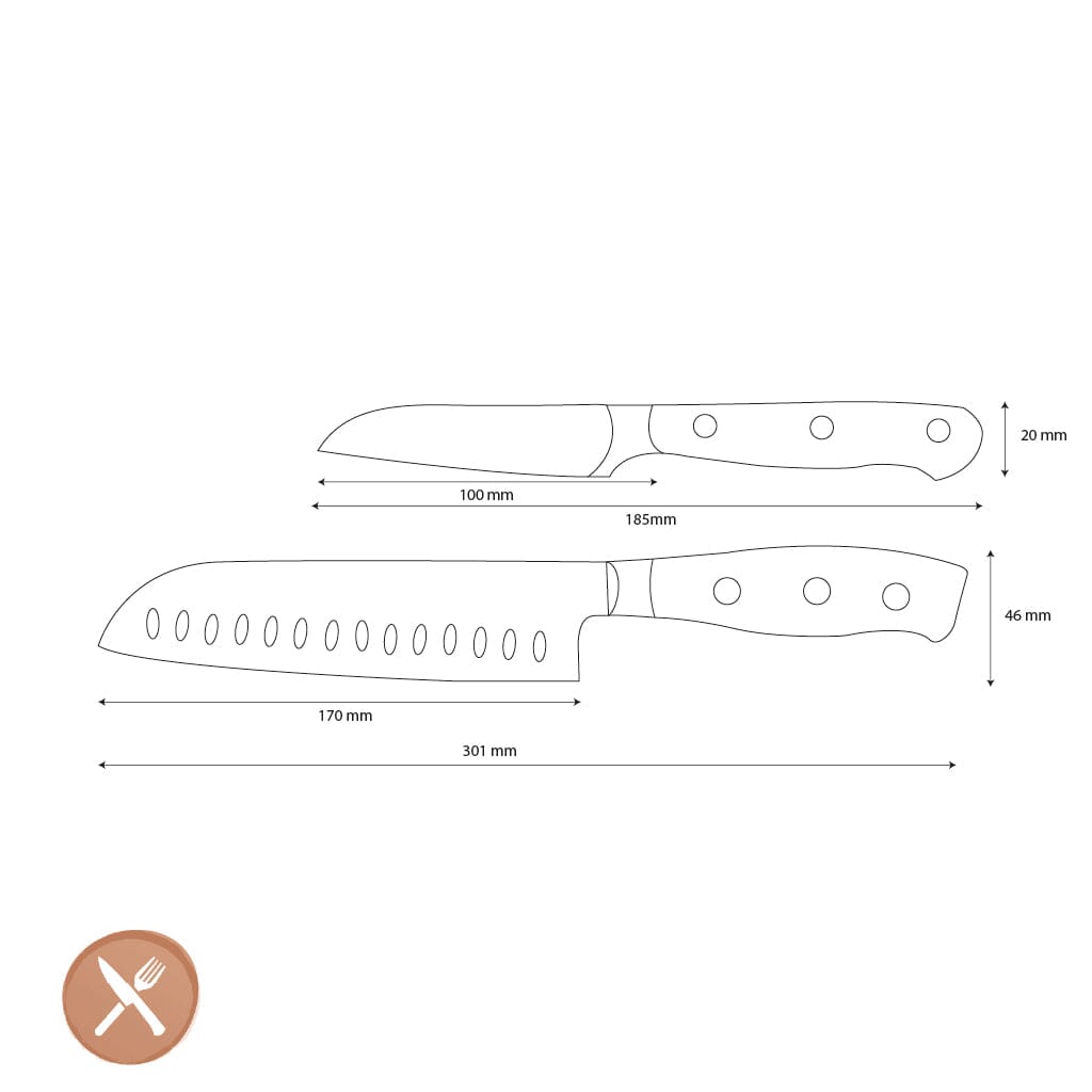 Ces deux couteaux font partie de la célèbre série Classic de WÜSTHOF et garantissent un tranchant inégalé, un équilibre parfait et une durabilité à toute épreuve. Forgés d'une seule pièce d' acier inoxydable , ils sont dotés d'un manche noir classique à trois rivets , pour une prise en main sûre et un look intemporel.