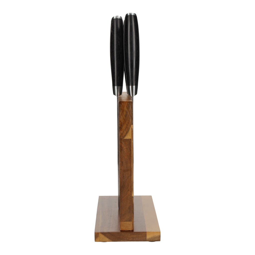 Ce bloc à couteaux en bois d'acacia est livré avec 6 couteaux de Pakka Wood séries adaptées à diverses tâches de découpe en cuisine. Grâce à la combinaison d'éléments uniques Bois de Pakka des poignées et un bloc à couteaux en bois d'acacia, c'est vraiment un bel ensemble de couteaux.