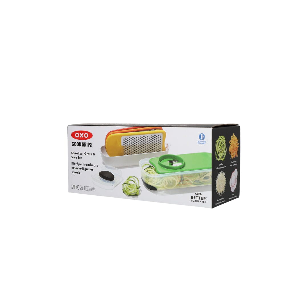 Élargissez vos horizons culinaires avec l'ensemble râpe, trancheuse et spirale Oxo , un ensemble essentiel pour toute cuisine. Cet ensemble polyvalent combine râper, trancher et spiraliser dans un seul emballage pratique. L'ensemble râpe, coupe et spirale rend la préparation des fruits et légumes à la fois facile et amusante.