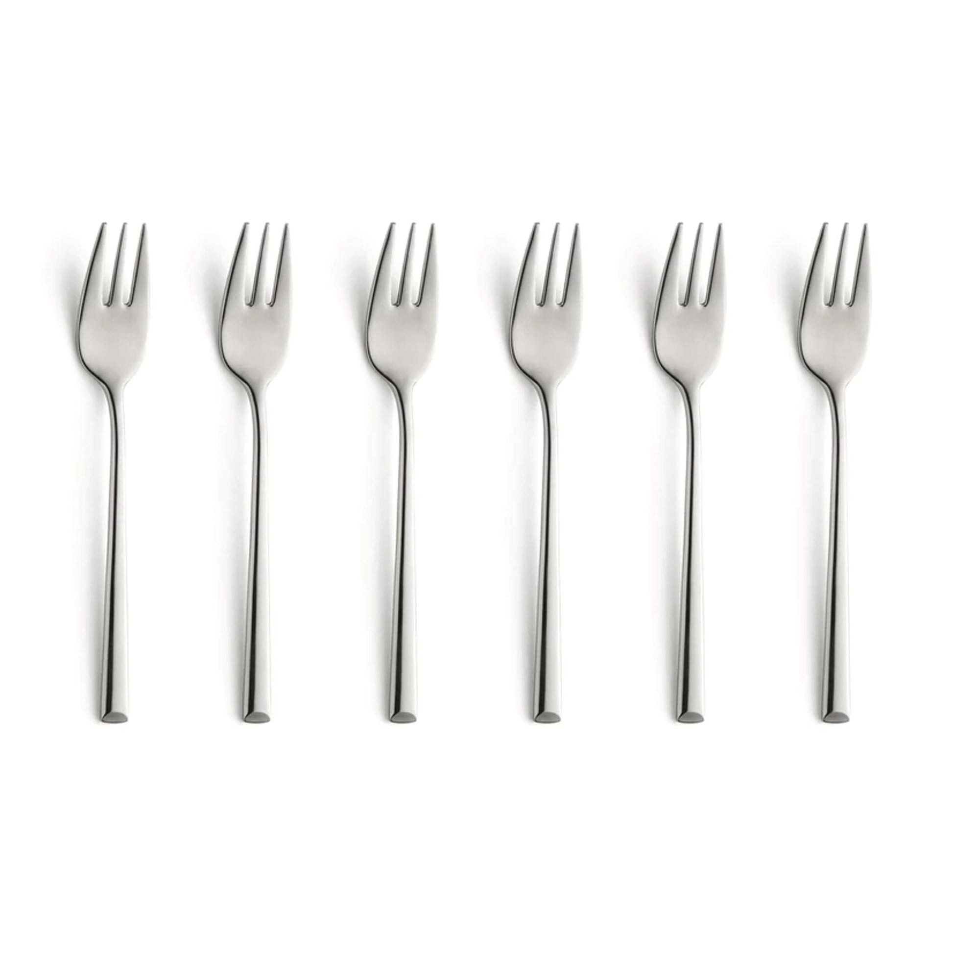 This Metropole cake fork set from the Amefa brand is a beautiful timeless cake fork set. The set has a slim and elegant design, with a sloping handle at the bottom. This design is inspired by modern city architecture and has a luxurious and contemporary look that is made of high-quality 18-10 stainless steel. The cutlery has a high-gloss finish and is suitable for cleaning in the dishwasher.