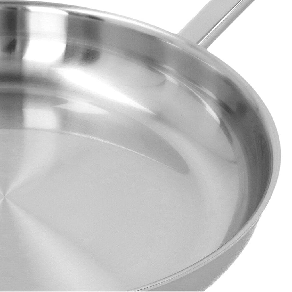 This pan has a 5-layer base. 5-layer pans elevate cooking with five layers of aluminum and stainless steel. These extra layers ensure even better heat distribution and retention, giving you more control over the temperature. Ideal for delicate cooking techniques where precision makes all the difference. The pan's weight gives you that extra bit of stability while cooking.