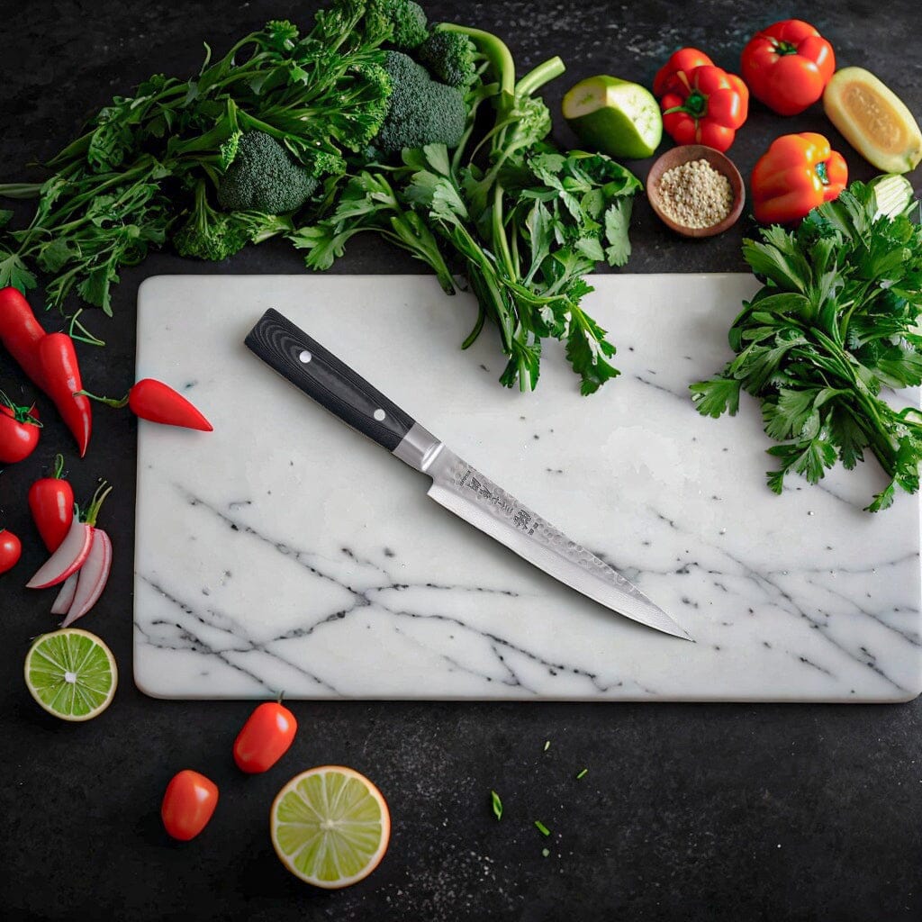 The Japanese Zen carving knife of 18 cm has been specially developed to meet the growing demand for high-quality Japanese knives. The 37-layer damask has a VG10 stainless steel core with a hardness of HRC 61 for long-lasting sharpness.